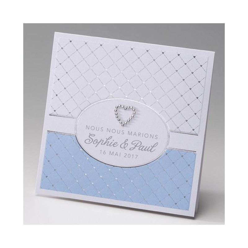 Faire Part Mariage Blanc Croisillons Coeur Argent Strass Belarto